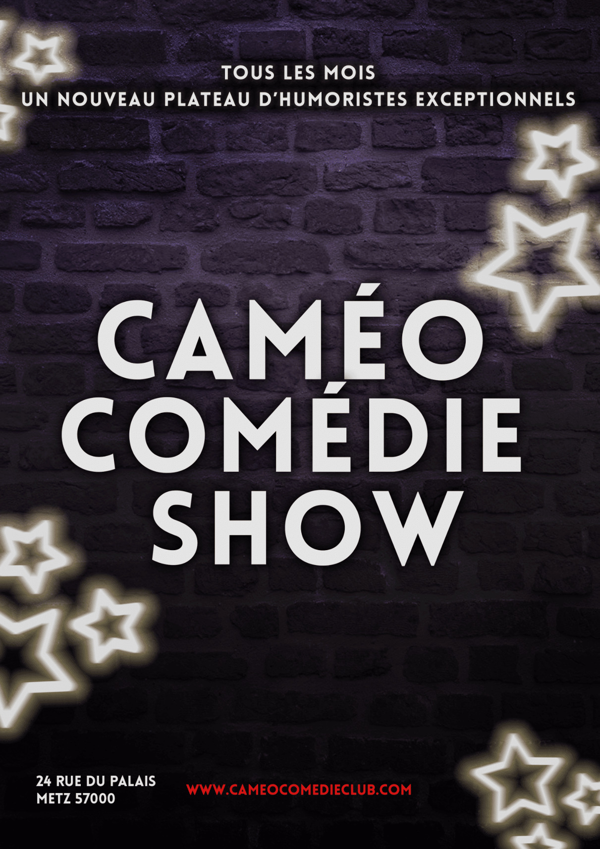 Bienvenue au « Caméo Comédie Show » ! Préparez-vous à une soirée de fous rires avec une sélection d’humoristes de grand talent.
