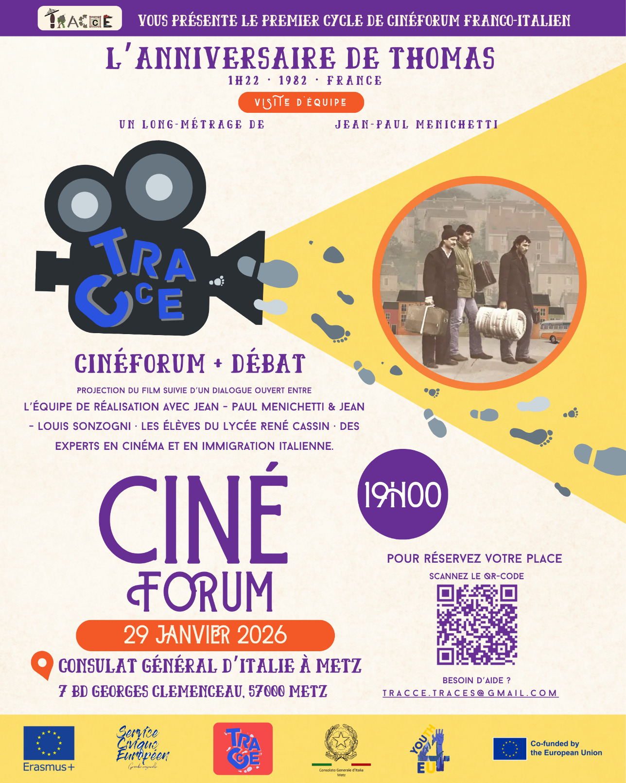 Projection du film suivie d’un dialogue ouvert entre l’équipe de réalisation avec Jean-Paul Menichetti, Jean-Louis Sonzogni, les élèves du Lycée René Cassin et des experts en cinéma et en immigration italienne.