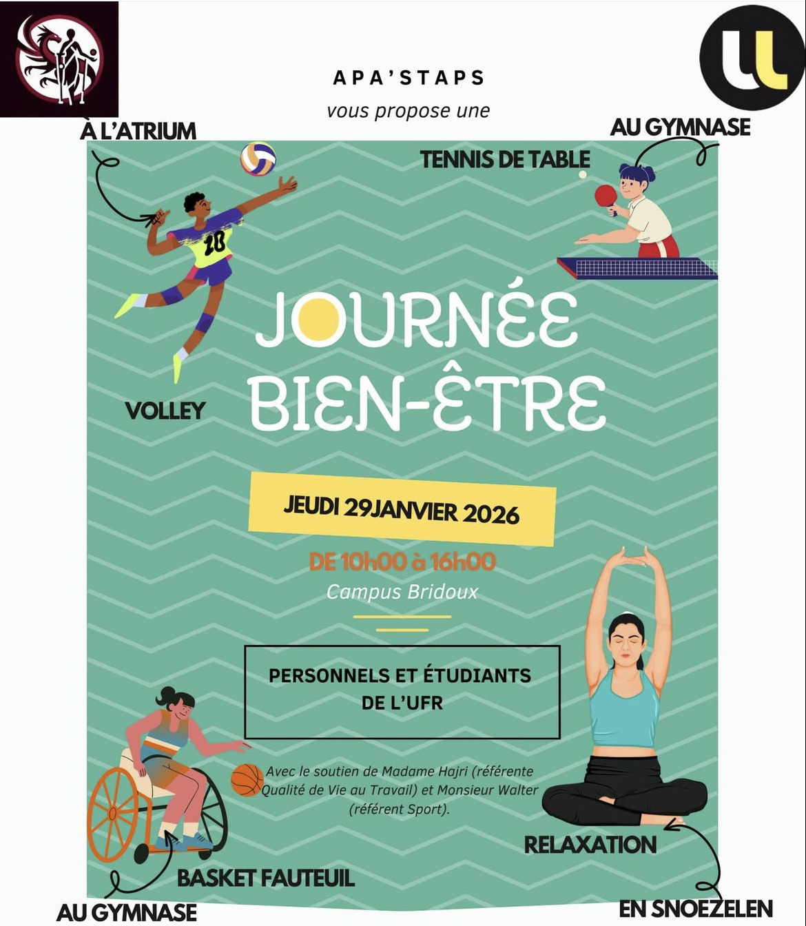 – 1er stand : Volley au niveau de l'atrium de 10h à 16h avec Mylène et Valentine en référentes