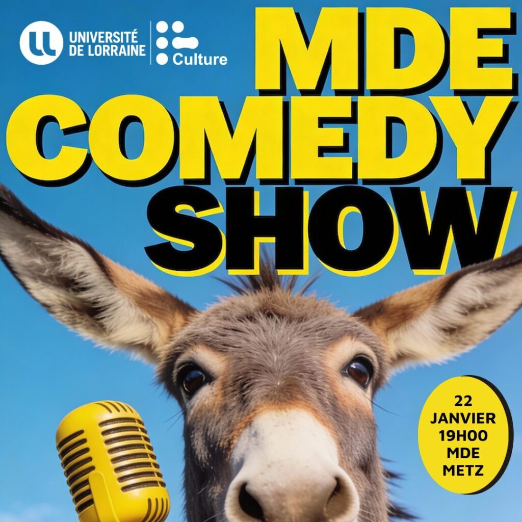 Le MDE COMEDY SHOW débarque à la Maison de l’Étudiant – Île du Saulcy à Metz le 22 janvier dès 19h ! Venez profiter d’une soirée stand up 100% gratuite, avec buffet apéritif, portée par l’humoriste Benjamin Walter et les étudiants de l’atelier stand up. Une dose d’humour parfaite pour bien commencer l’année