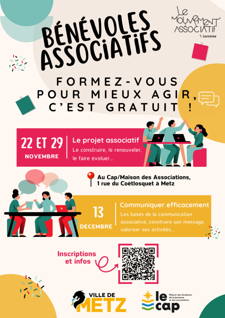 Le Cap / Maison des Associations, en partenariat avec Le Mouvement Associatif Lorraine, propose un calendrier de formations gratuites spécialement conçues pour les bénévoles.